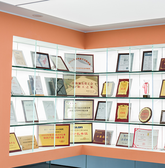 Компания имеет почетные звания «Научно-технические малые и средние предприятия провинции Чжэцзян», «Облачные предприятия провинции Чжэцзян», «Докторская рабочая станция провинции Чжэцзян», «Специализированные и новые» предприятия города Нинбо, Центр инженерных технологий города Нинбо, Листинговые предприятия Центра акционерного капитала города Нинбо, Зеленая фабрика города Цыси и 50 лучших предприятий с акра производства города Цыси. Она имеет 123 патента различных типов, является членом Китайского комитета по стандартизации осветительных приборов, участвует в 2 национальных стандартах и 7 групповых стандартах, имеет лаборатории-свидетели TUV и SGS, а также создала совместный центр исследований и разработок для интеллектуальных осветительных приборов и базу стажировок «промышленность-университет-исследование» с Шанхайским университетом прикладных технологий.